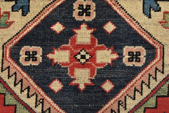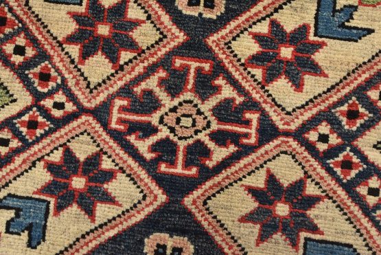 Original antique Kazak rugs from the Caucasus region inspire the creation of new Kazak rugs. These rugs are woven with fine wool using traditional Kazak patterns and finished with a low-cut pile to give them an authentic vintage look.