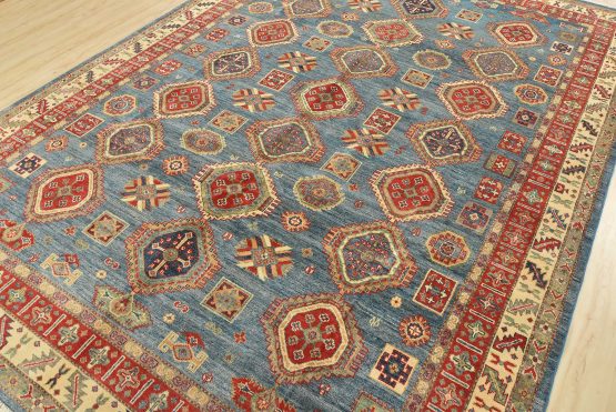 Original antique Kazak rugs from the Caucasus region inspire the creation of Kazak rugs. These rugs are woven with fine wool using traditional Kazak patterns and finished with a low-cut pile to give them an authentic vintage look.