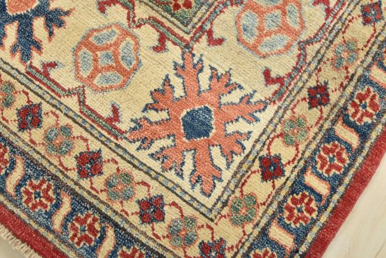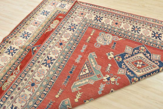 Original antique Kazak rugs from the Caucasus region inspire the creation of new Kazak rugs. These rugs are woven with fine wool using traditional Kazak patterns and finished with a low-cut pile to give them an authentic vintage look.