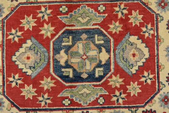 Original antique Kazak rugs from the Caucasus region inspire the creation of Kazak rugs. These rugs are woven with fine wool using traditional Kazak patterns and finished with a low-cut pile to give them an authentic vintage look.