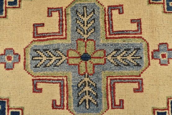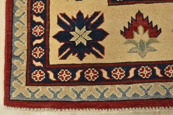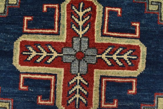 Original antique Kazak rugs from the Caucasus region inspire the creation of new Kazak rugs. These rugs are woven with fine wool using traditional Kazak patterns and finished with a low-cut pile, giving them an authentic vintage look.