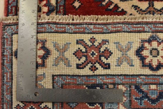 Original antique Kazak rugs from the Caucasus region inspire the creation of new Kazak rugs. These rugs are woven with fine wool using traditional Kazak patterns and finished with a low-cut pile, giving them an authentic vintage look.