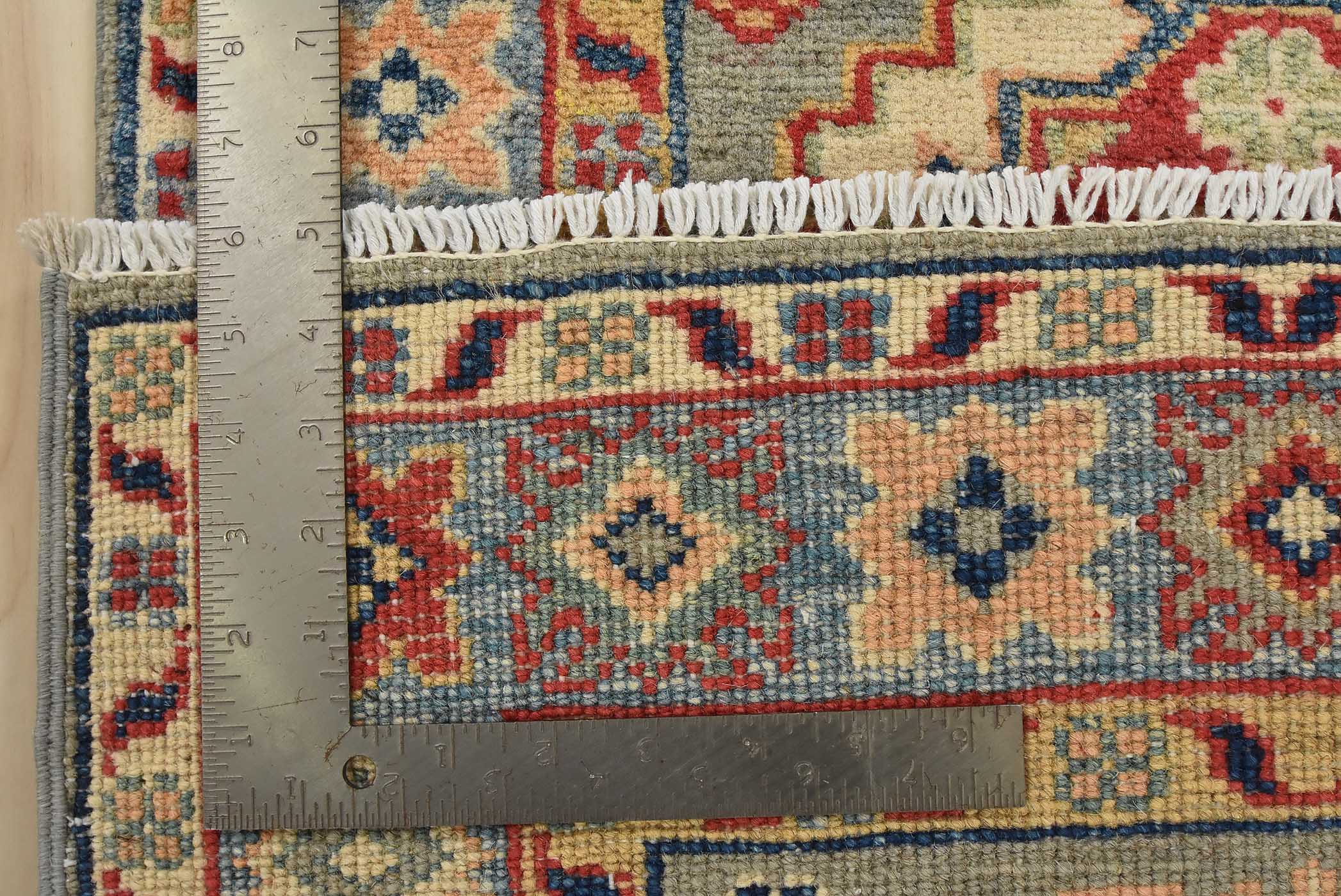 Original antique Kazak rugs from the Caucasus region inspire the creation of new Kazak rugs. These rugs are woven with fine wool using traditional Kazak patterns and finished with a low-cut pile to give them an authentic vintage look.