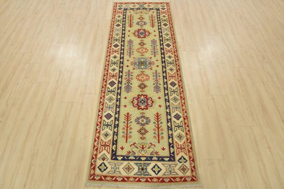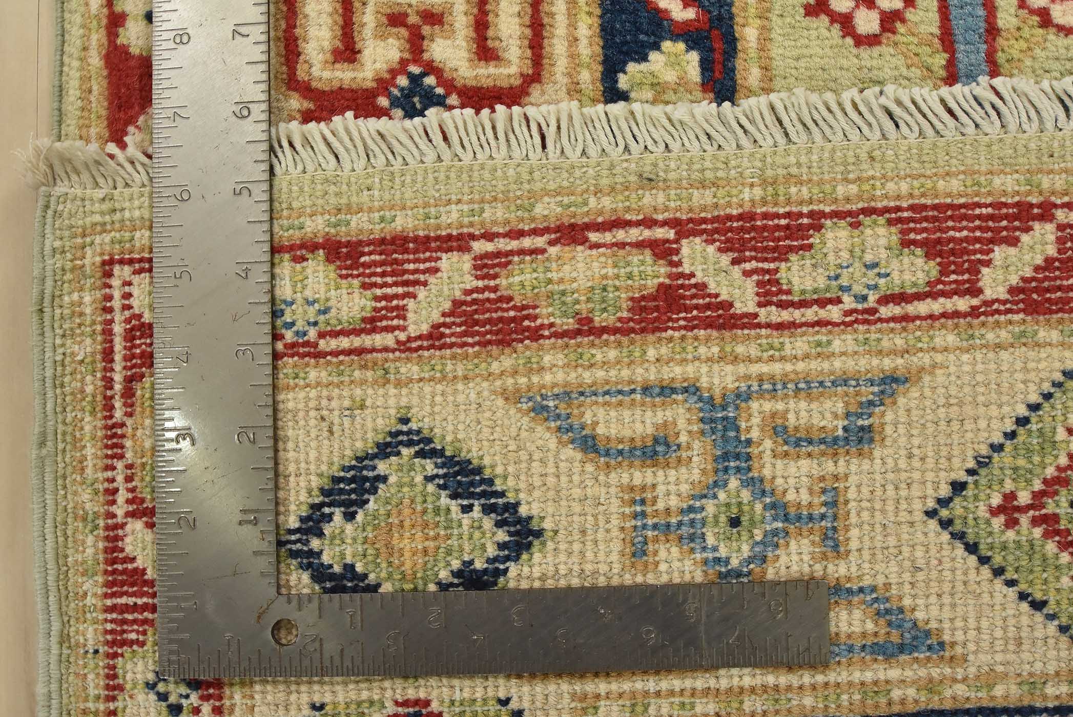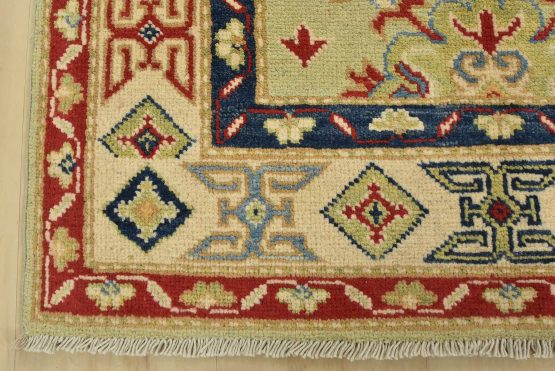 Original antique Kazak rugs from the Caucasus region inspire the creation of new Kazak rugs. These rugs are woven with fine wool using traditional Kazak patterns and finished with a low-cut pile to give them an authentic vintage look.