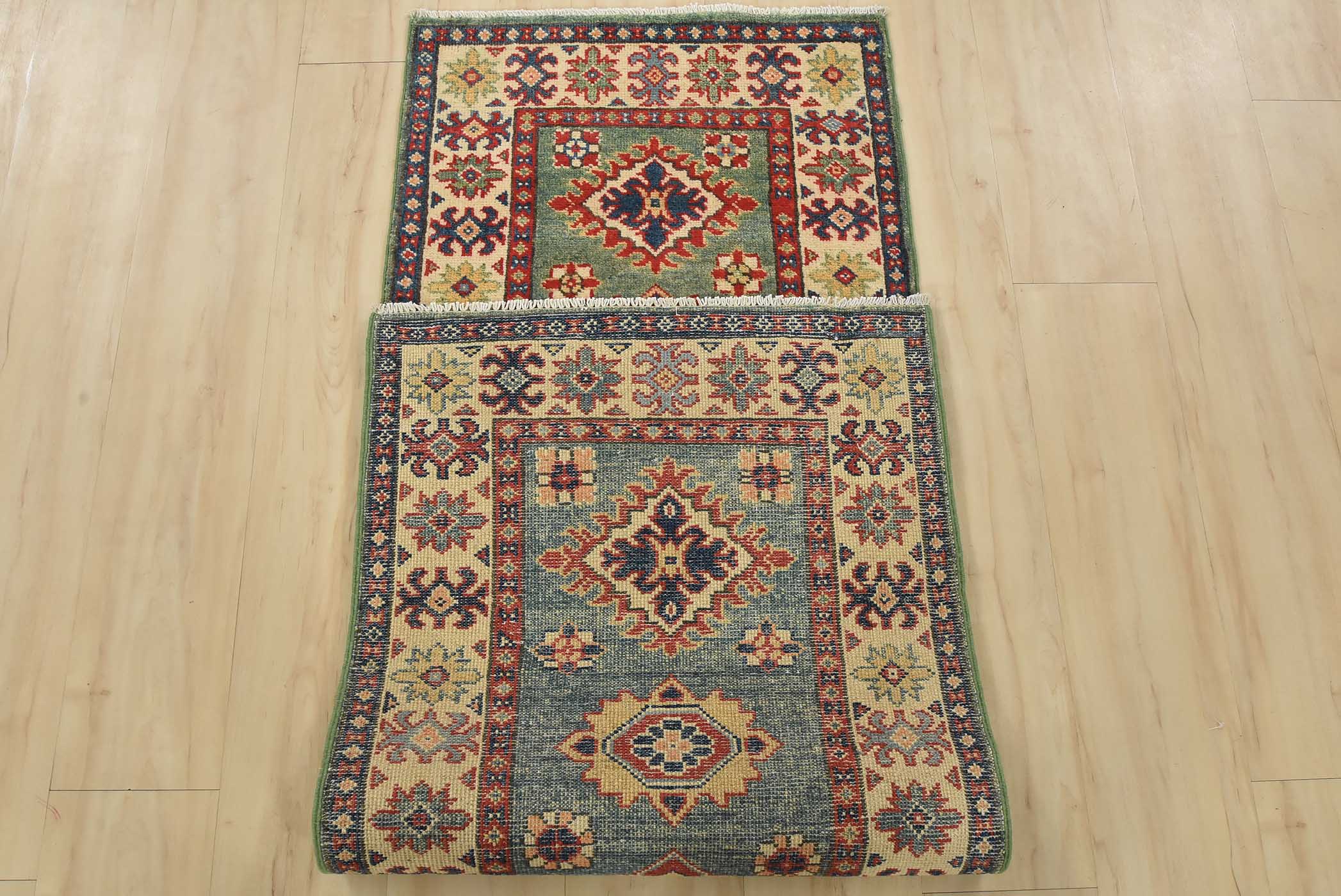 Original antique Kazak rugs from the Caucasus region inspire the creation of new Kazak rugs. These rugs are woven with fine wool using traditional Kazak patterns and finished with a low-cut pile to give them an authentic vintage look.