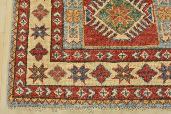 Original antique Kazak rugs from the Caucasus region inspire the creation of Kazak rugs. These rugs are woven with fine wool using traditional Kazak patterns and finished with a low-cut pile to give them an authentic vintage look.