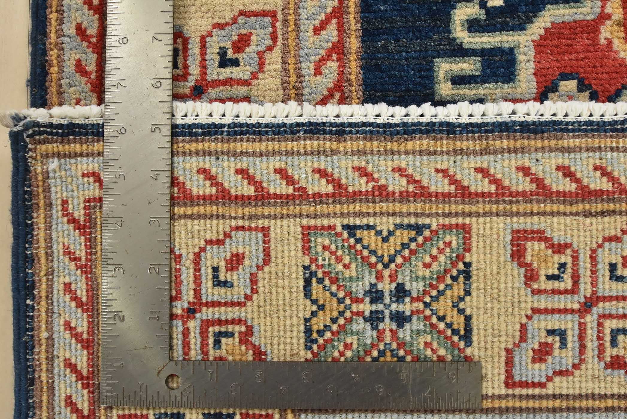 Original antique Kazak rugs from the Caucasus region inspire the creation of new Kazak rugs. These rugs are woven with fine wool using traditional Kazak patterns and finished with a low-cut pile to give them an authentic vintage look.