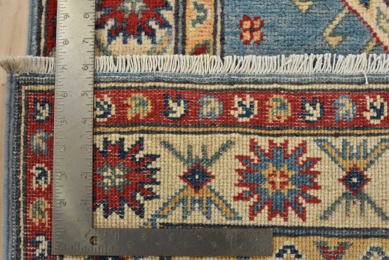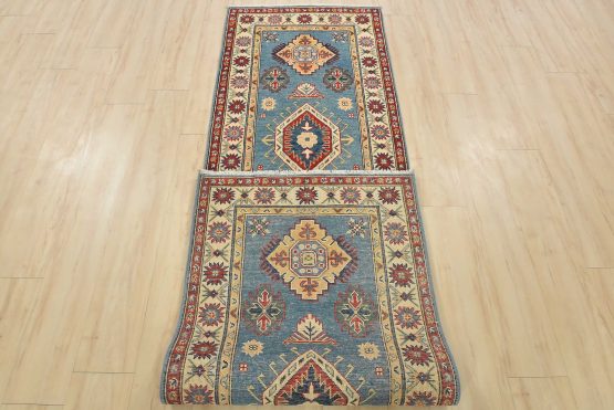 Original antique Kazak rugs from the Caucasus region inspire the creation of new Kazak rugs. These rugs are woven with fine wool using traditional Kazak patterns and finished with a low-cut pile to give them an authentic vintage look.