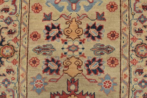 Original antique Kazak rugs from the Caucasus region inspire the creation of new Kazak rugs. These rugs are woven with fine wool using traditional Kazak patterns and finished with a low-cut pile to give them an authentic vintage look.