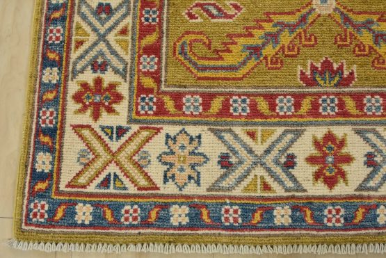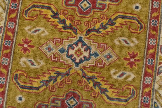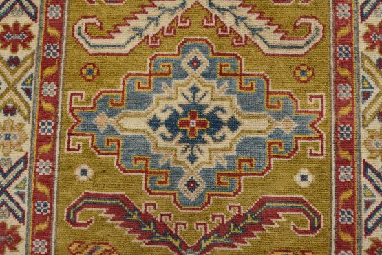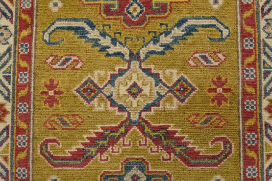 Original antique Kazak rugs from the Caucasus region inspire the creation of new Kazak rugs. These rugs are woven with fine wool using traditional Kazak patterns and finished with a low-cut pile to give them an authentic vintage look.
