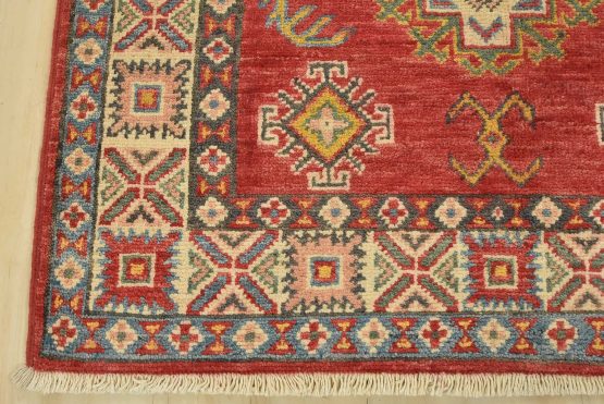 Original antique Kazak rugs from the Caucasus region inspire the creation of new Kazak rugs. These rugs are woven with fine wool using traditional Kazak patterns and finished with a low-cut pile to give them an authentic vintage look.