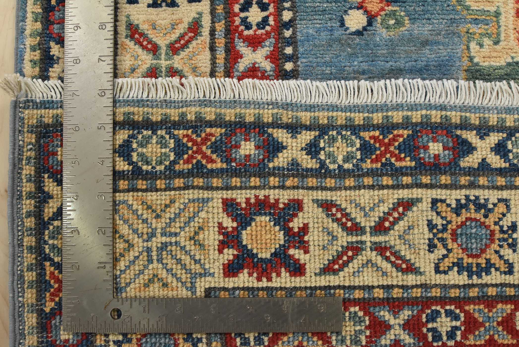Original antique Kazak rugs from the Caucasus region inspire the creation of new Kazak rugs. These rugs are woven with fine wool using traditional Kazak patterns and finished with a low-cut pile to give them an authentic vintage look.