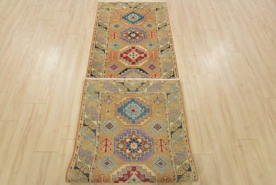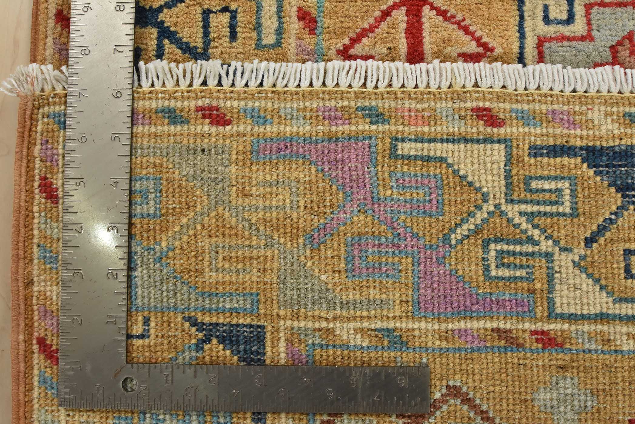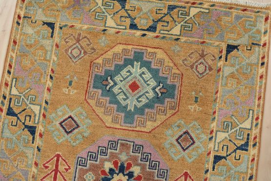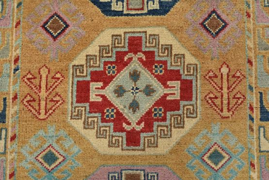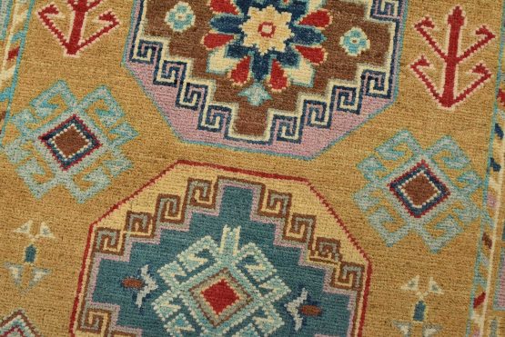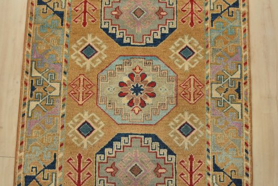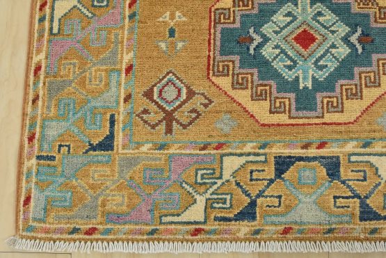 Original antique Kazak rugs from the Caucasus region inspire the creation of new Kazak rugs. These rugs are woven with fine wool using traditional Kazak patterns and finished with a low-cut pile to give them an authentic vintage look.