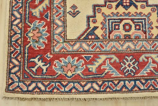 Original antique Kazak rugs from the Caucasus region inspire the creation of Kazak rugs. These rugs are woven with fine wool using traditional Kazak patterns and finished with a low-cut pile to give them an authentic vintage look.