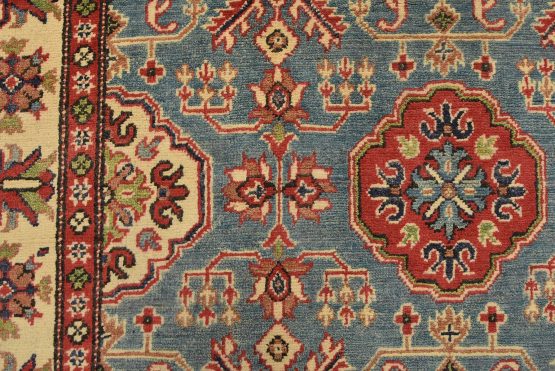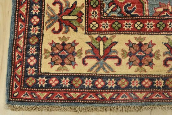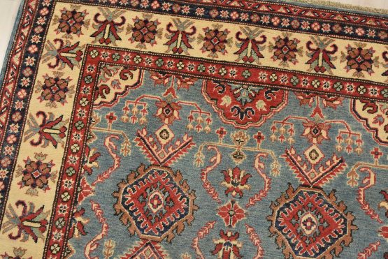 Original antique Kazak rugs from the Caucasus region inspire the creation of Kazak rugs. These rugs are woven with fine wool using traditional Kazak patterns and finished with a low-cut pile to give them an authentic vintage look.
