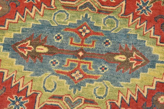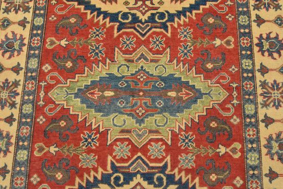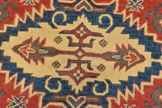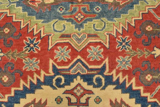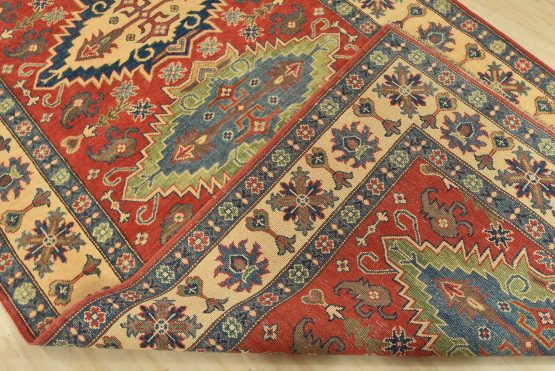 Original antique Kazak rugs from the Caucasus region inspire the creation of Kazak rugs. These rugs are woven with fine wool using traditional Kazak patterns and finished with a low-cut pile to give them an authentic vintage look.