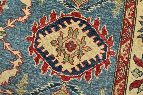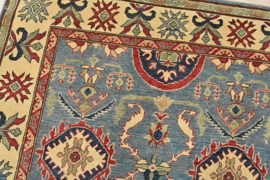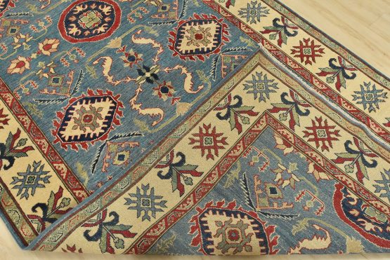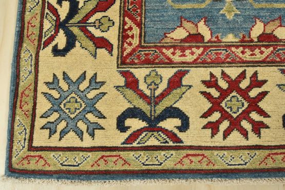 Original antique Kazak rugs from the Caucasus region inspire the creation of Kazak rugs. These rugs are woven with fine wool using traditional Kazak patterns and finished with a low-cut pile to give them an authentic vintage look.
