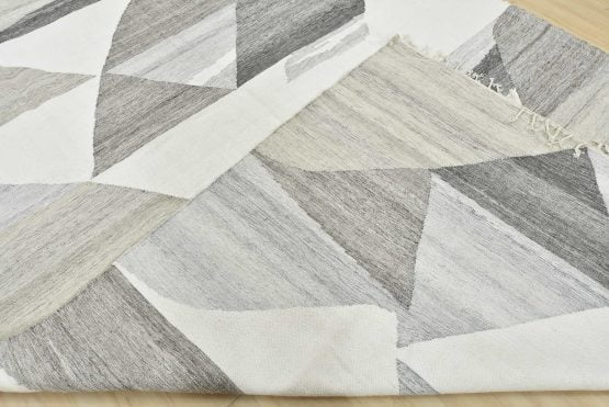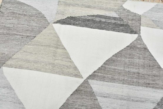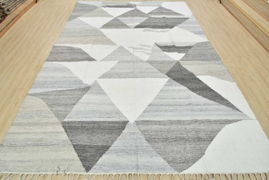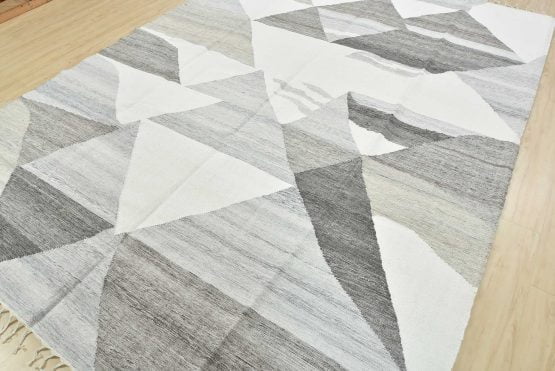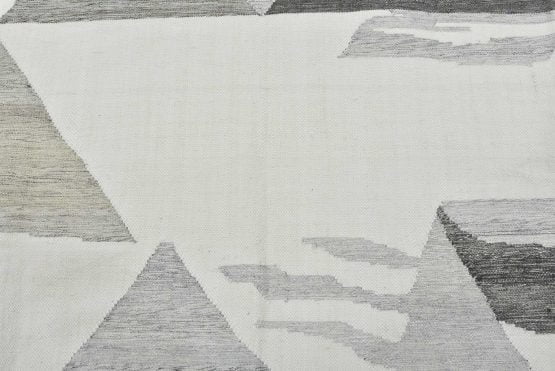 Abstract Kilim Rug 8’9” x 12’3” White Gray Wool Handwoven Carpet