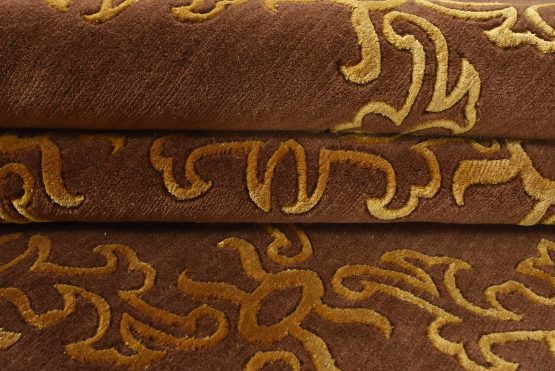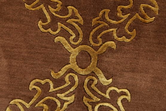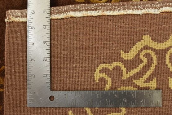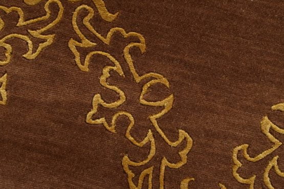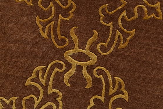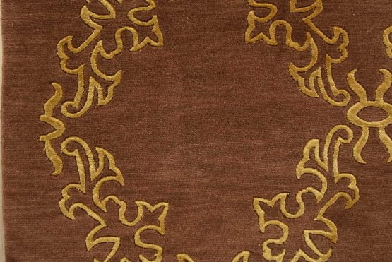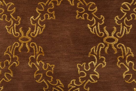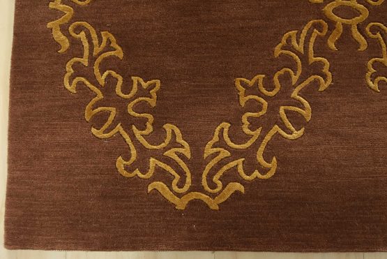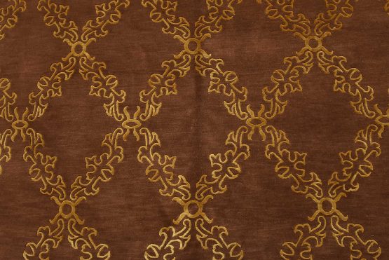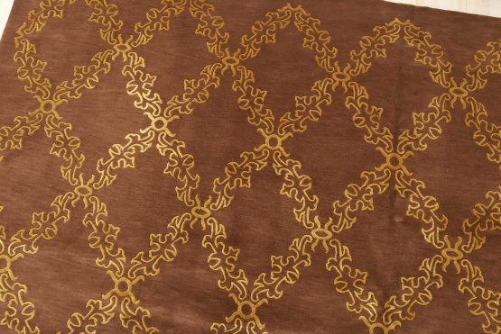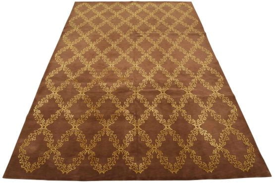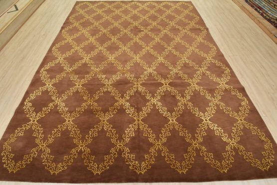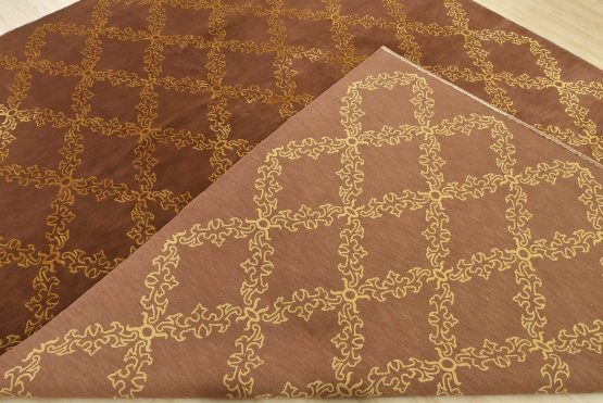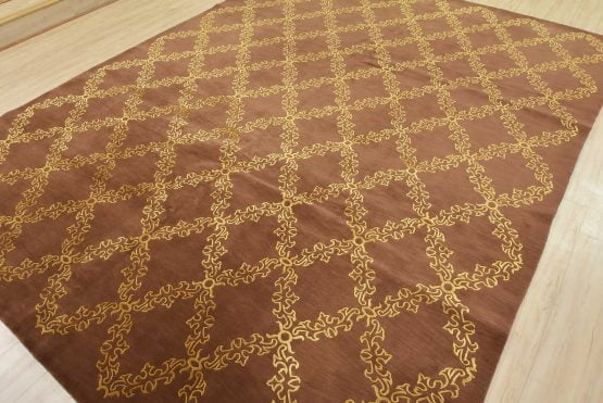 A modern Nepalese design rug hand-knotted with an all-wool pile on a cotton foundation. This oriental rug features an all-over diamond-shaped pattern made of botanical motifs set against a brown background. It is new and in excellent condition.