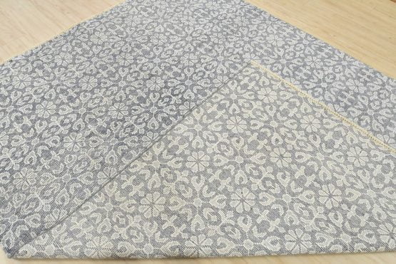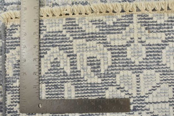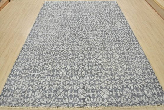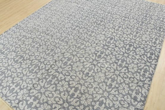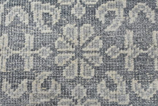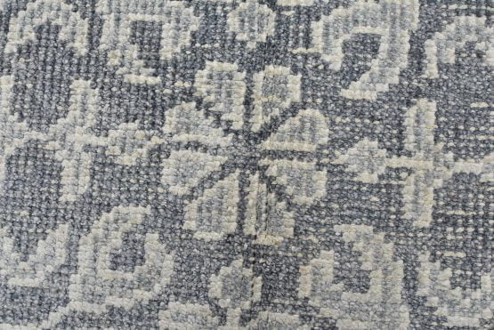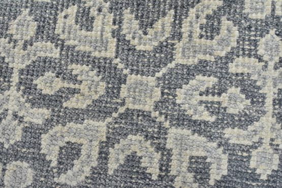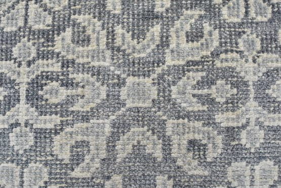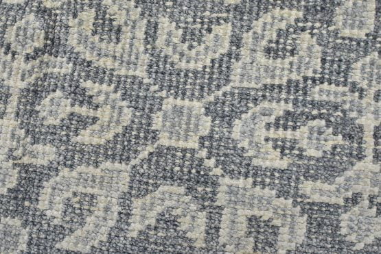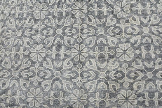 A modern area rug hand-knotted with a viscose pile on a cotton foundation. This oriental rug features an all-over botanical pattern set against a gray background. It is new and in excellent condition.