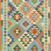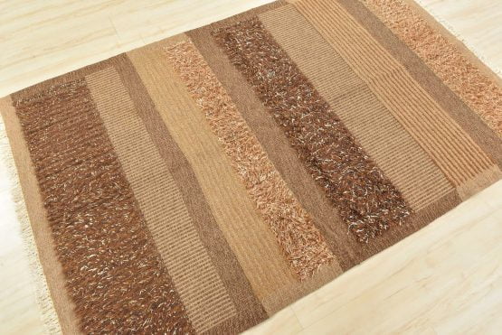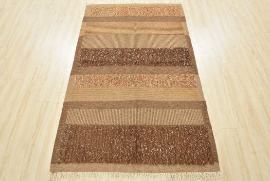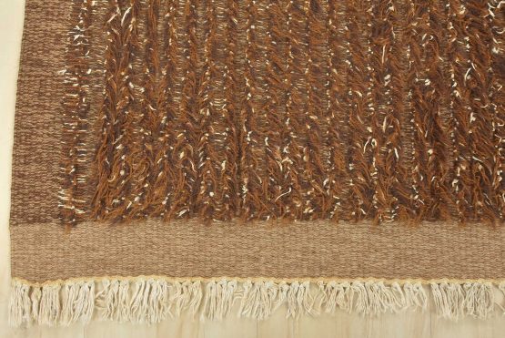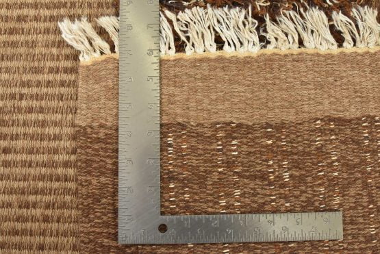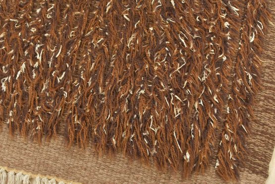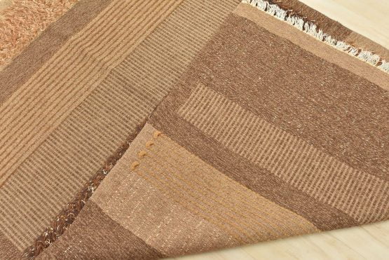A contemporary Moroccan rug handwoven with fine wool on a cotton foundation. This flat-woven area rug features areas of wool pile. It is new and in excellent condition.