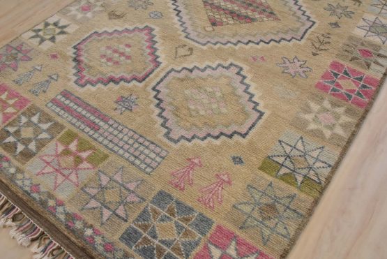 Moroccan rugs are recreated in the original style by skilled artisan weavers. They are woven with a plush wool pile and feature classic patterns and styles inspired by nomadic Moroccan tribes.