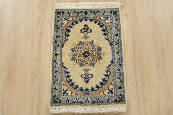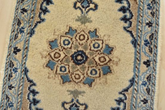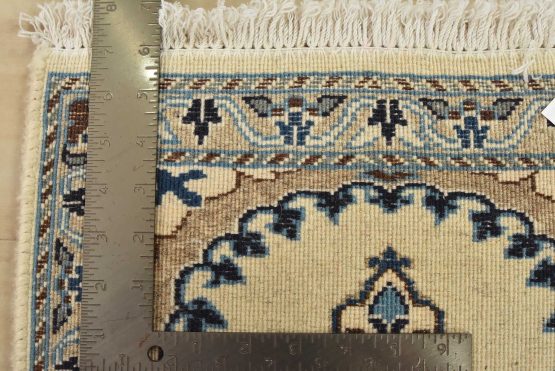 An authentic vintage traditional Nain rug hand-knotted with fine wool and natural dyes. This oriental rug features a central medallion set against an ivory background. The wool pile does show some minor wear; please refer to the photos. Otherwise, this rug is in very good condition.