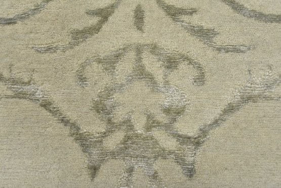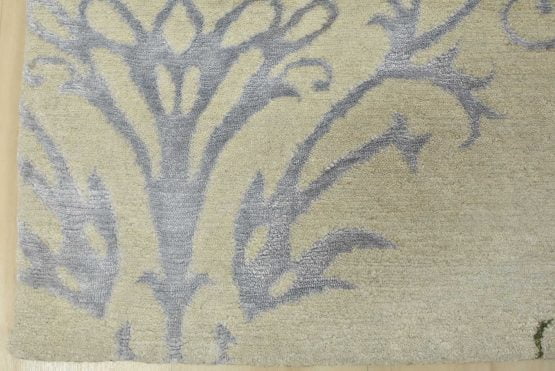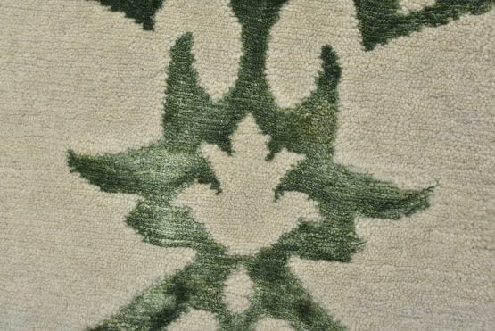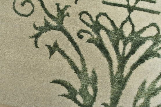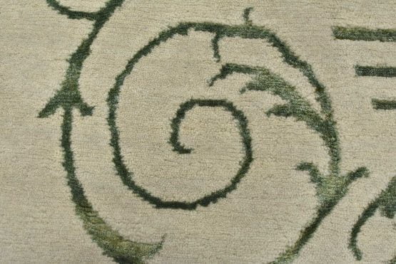 A modern traditional William Morris rug hand-knotted with a wool pile with viscose highlights on a cotton foundation. This oriental rug features botanical designs set against an ivory background. It is new and in excellent condition.