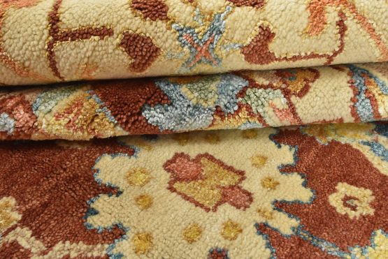 Using designs and patterns of 19th-century Turkish weavers, these beautiful rugs recreate the classic style of the Anatolian Usak (Oushak) design. Hand-woven in India by artisan weavers using soft, lustrous wool, these rugs would coordinate with any traditional, modern, or contemporary home decor.