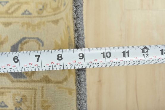 A modern traditional Oushak rug hand-knotted with an all-wool pile on a cotton foundation. This oriental rug features a subtle all-over botanical design set against a gray background. It is new and in excellent condition.