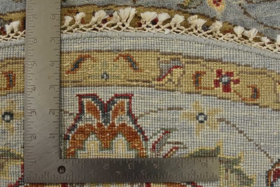A traditional Tabriz rug hand-knotted with an all-wool pile on a cotton foundation. This oriental rug features an all-over floral pattern set against a light blue background. It is new and in excellent condition.