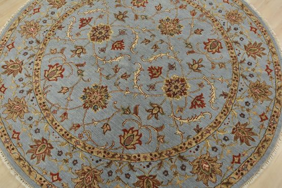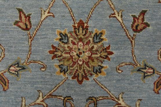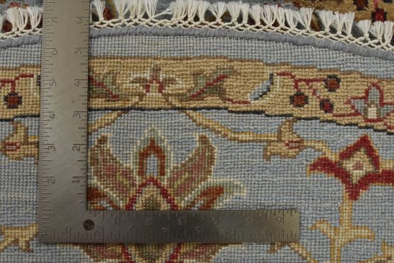 A traditional Tabriz rug hand-knotted with an all-wool pile on a cotton foundation. This oriental rug features an all-over floral pattern set against a light blue background. It is new and in excellent condition.