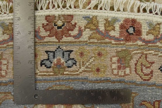 A traditional Tabriz rug hand-knotted with an all-wool pile on a cotton foundation. This beautiful oriental rug features all-over floral and botanical designs set against a beige background. It is new and in excellent condition.