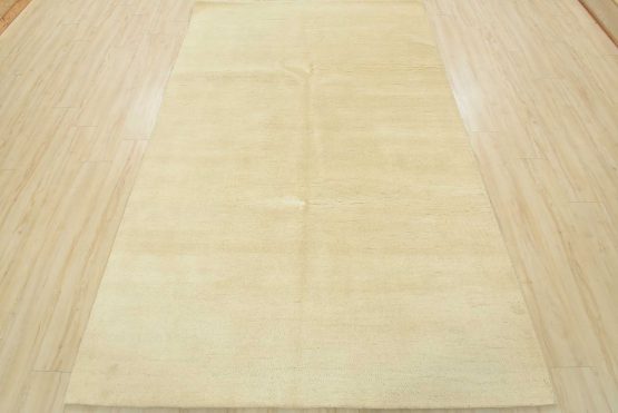 Solid Ivory Rug 6′ x 9’1” Wool Contemporary Hand-Knotted Area Carpet