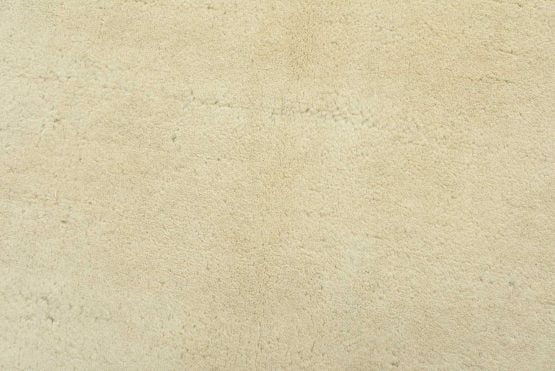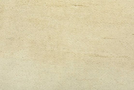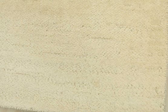 A contemporary, solid ivory-colored rug hand-knotted with an all-wool pile on a cotton foundation. This finely woven rug is new and in excellent condition.