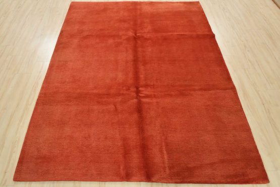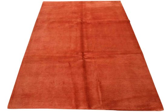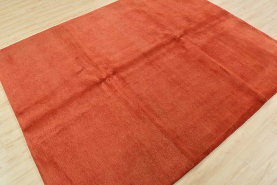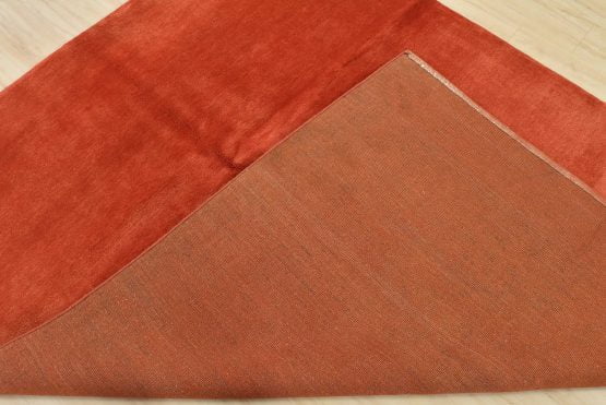 A contemporary solid red area rug hand-knotted with an all-wool pile on a cotton foundation. This finely woven rug is new and in excellent condition.