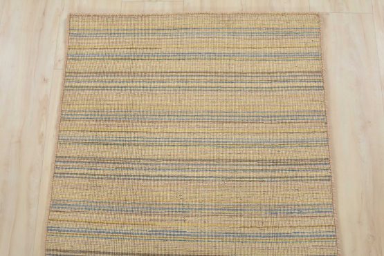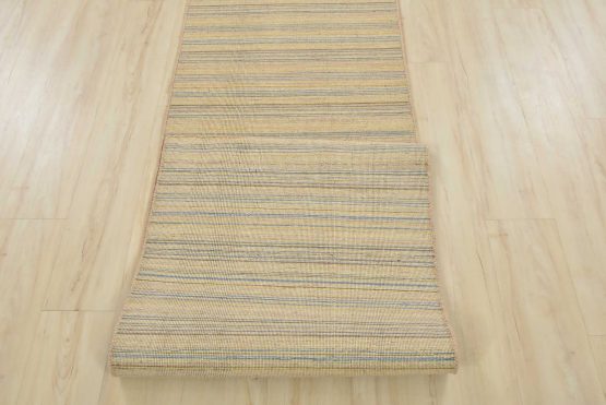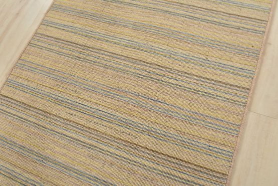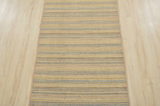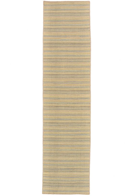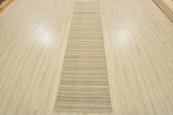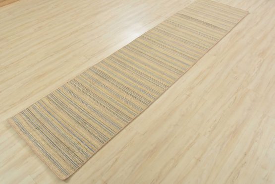 A contemporary striped flat-weave runner hand-loomed with all wool. This rug is new and in excellent condition.
