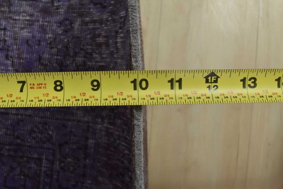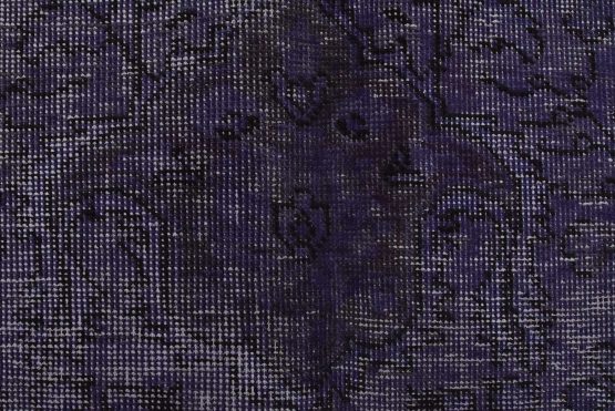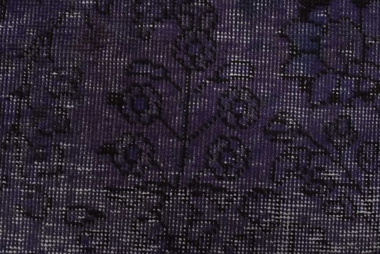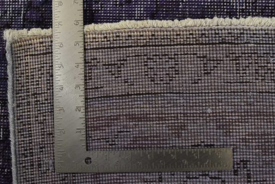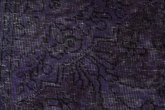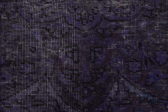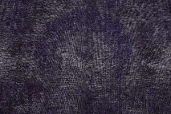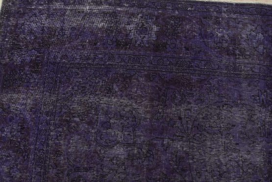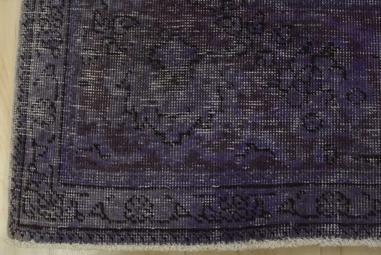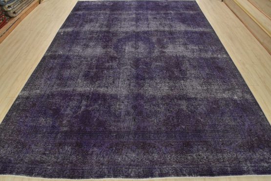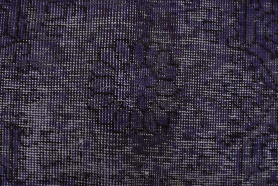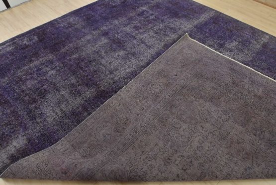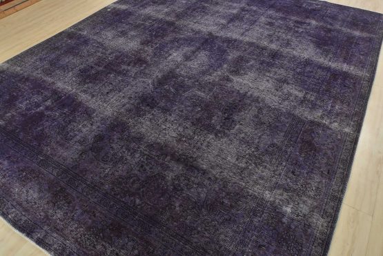 An authentic vintage traditional Overdyed Tabriz rug hand-knotted with an all-wool pile on a cotton foundation. This oriental rug features a muted central medallion surrounded by floral designs set against a purple background. It has a low wool pile, is worn and distressed, and has minor imperfections (see photos). However, it is in very good condition.