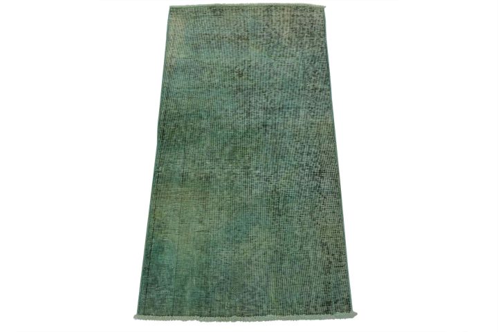 An authentic vintage Overdyed Tabriz rug hand-knotted with an all-wool pile on a cotton foundation. It has a low wool pile, is worn and distressed, and has minor imperfections (see photos). However, it is in very good condition.