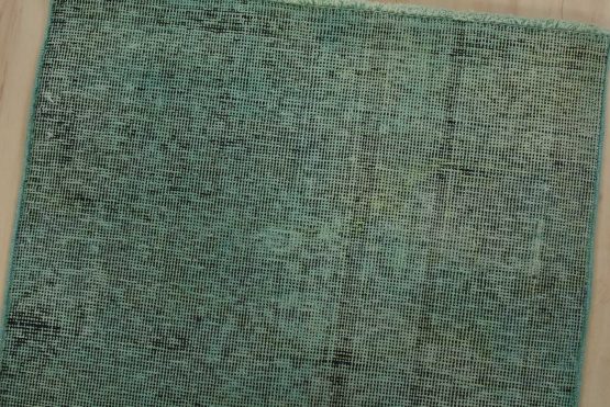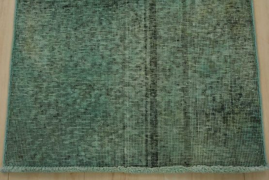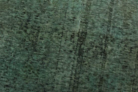 An authentic vintage Overdyed Tabriz rug hand-knotted with an all-wool pile on a cotton foundation. It has a low wool pile, is worn and distressed, and has minor imperfections (see photos). However, it is in very good condition.