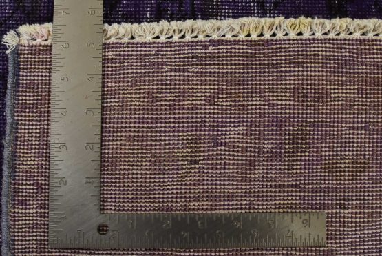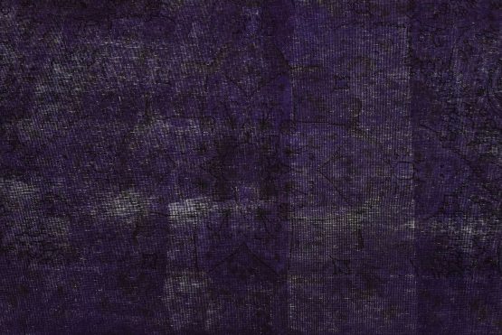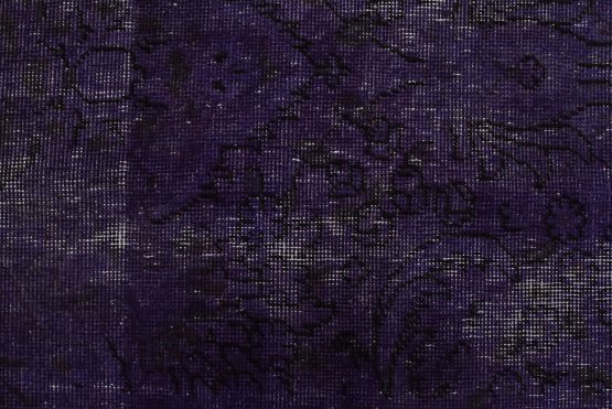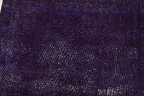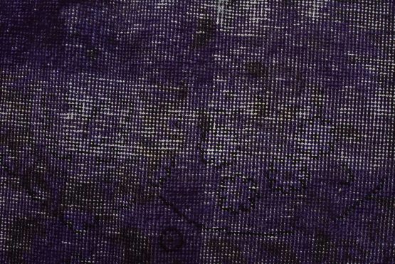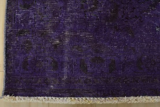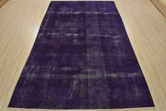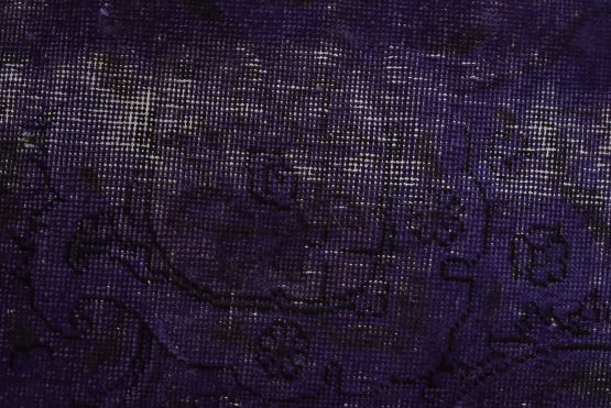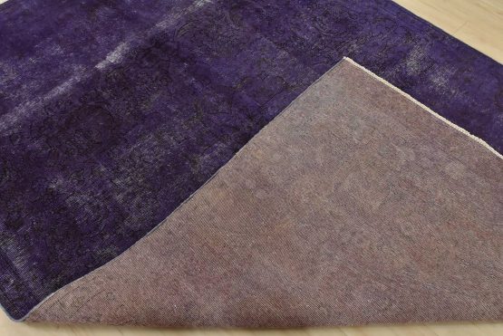 An authentic vintage traditional Overdyed Tabriz rug hand-knotted with an all-wool pile on a cotton foundation. This oriental rug features a muted central medallion surrounded by muted floral designs set against a purple background. It has a low wool pile, is worn and distressed, and has minor imperfections (see photos). However, it is in very good condition.