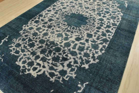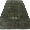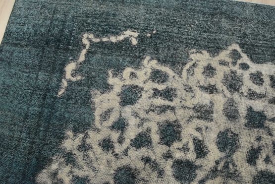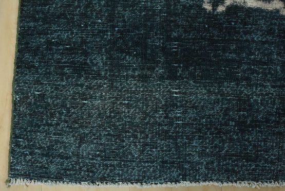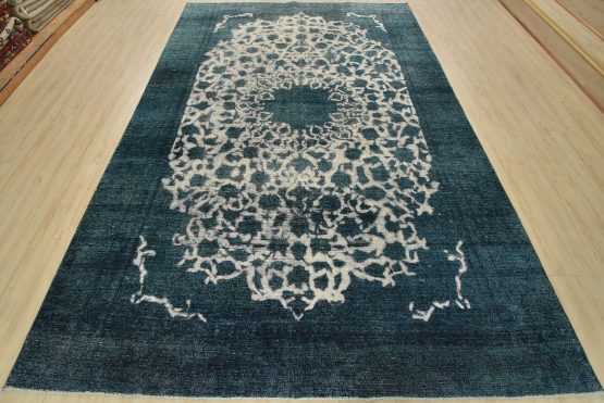 An authentic vintage traditional Overdyed Tabriz rug hand-knotted with an all-wool pile on a cotton foundation. This oriental rug features a central medallion surrounded by a floral design. It has a low wool pile, is worn and distressed, with threadbare areas and minor imperfections (see photos). However, it is in very good condition.