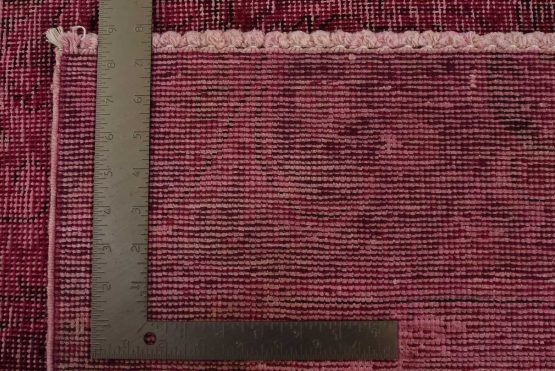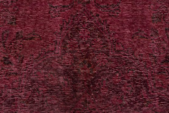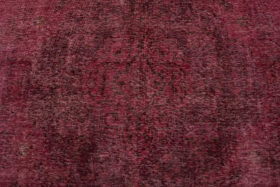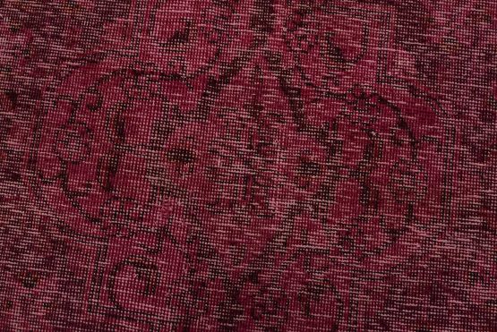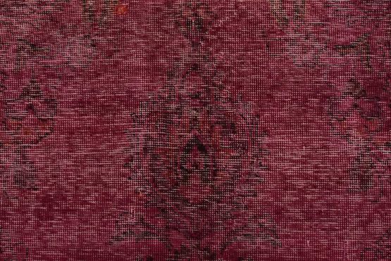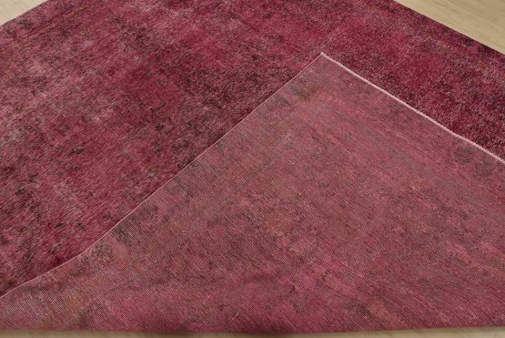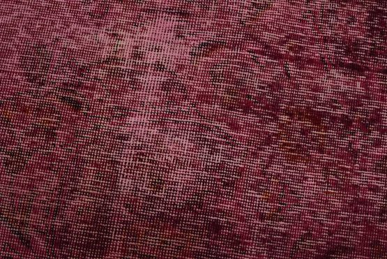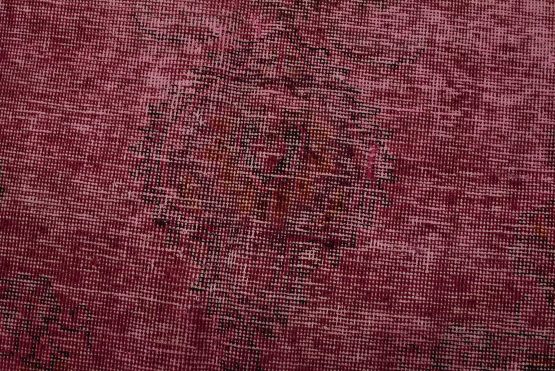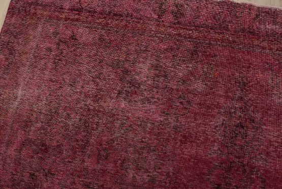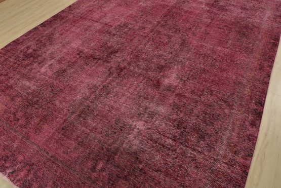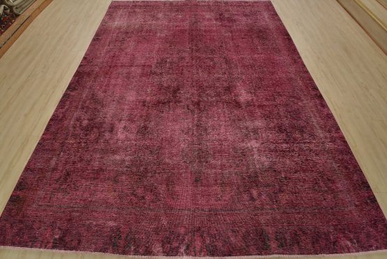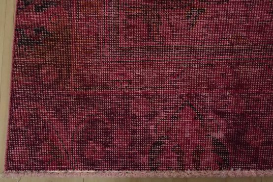 An authentic vintage traditional Overdyed Tabriz rug hand-knotted with an all-wool pile on a cotton foundation. This oriental rug features a muted central medallion surrounded by muted floral motifs set against a pink background. It has a low wool pile, is worn and distressed, and has minor imperfections (see photos). However, it is in very good condition.