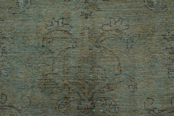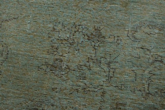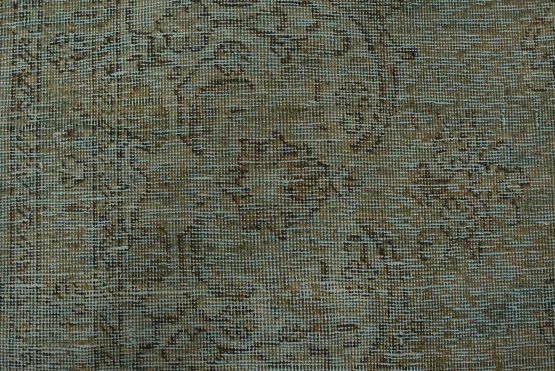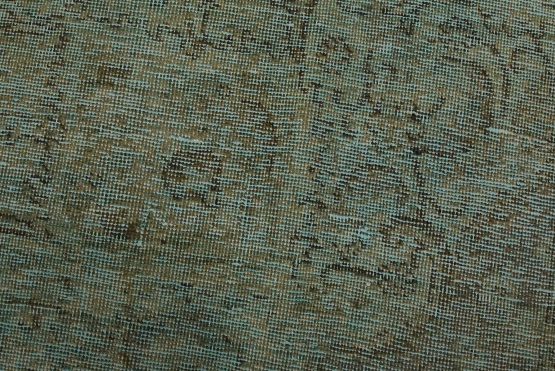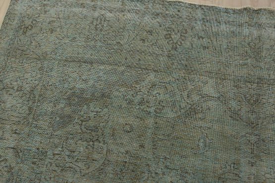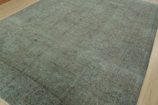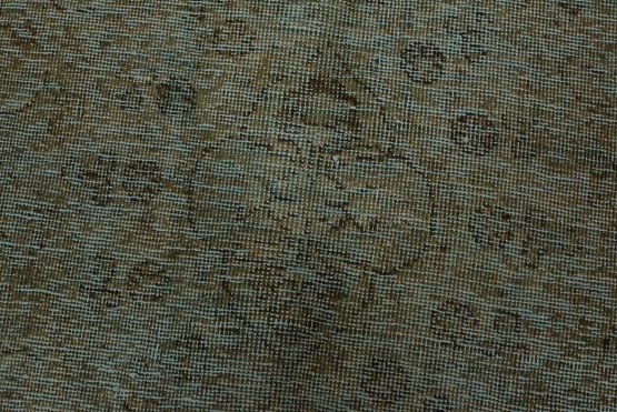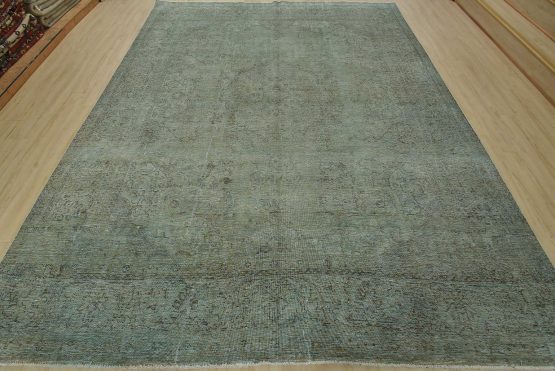 An authentic vintage traditional Overdyed Tabriz rug hand-knotted with an all-wool pile on a cotton foundation. This oriental rug features a muted central medallion surrounded by floral motifs set against a blue background. It has a low wool pile, is worn and distressed, and has minor imperfections (see photos). However, it is in very good condition.