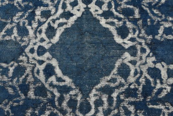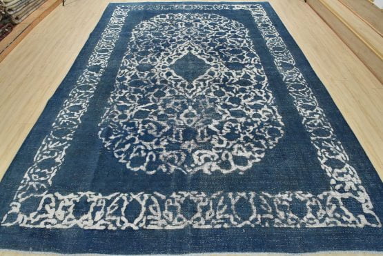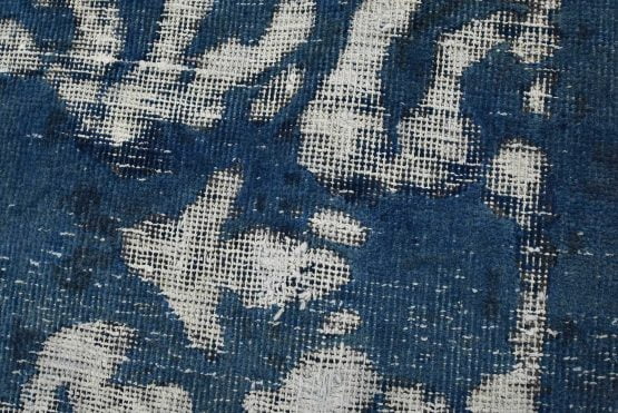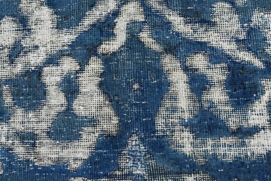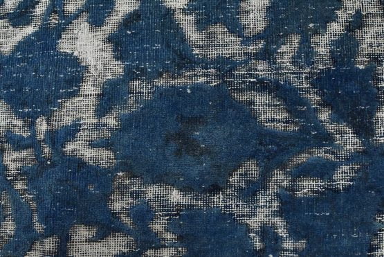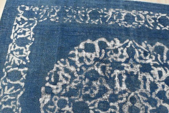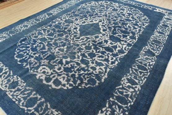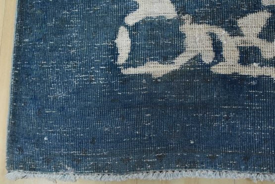 Tabriz Rug 9’7” x 13′ Blue Wool Vintage Overdyed Hand-Knotted Carpet