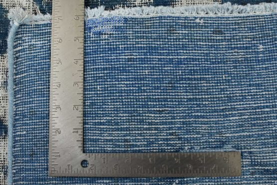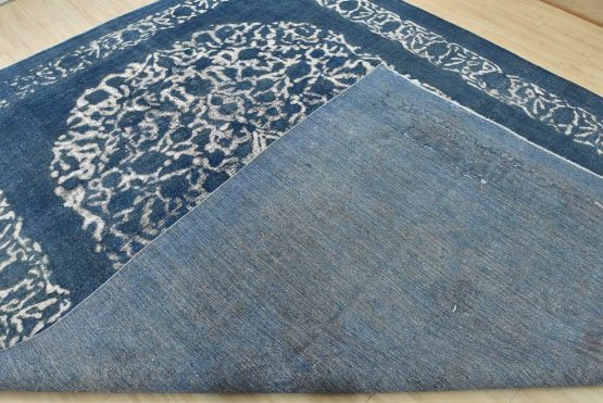 Modern Oriental Rug 5’11” x 9’1” Printed Blue Viscose Hand-Loomed Carpet