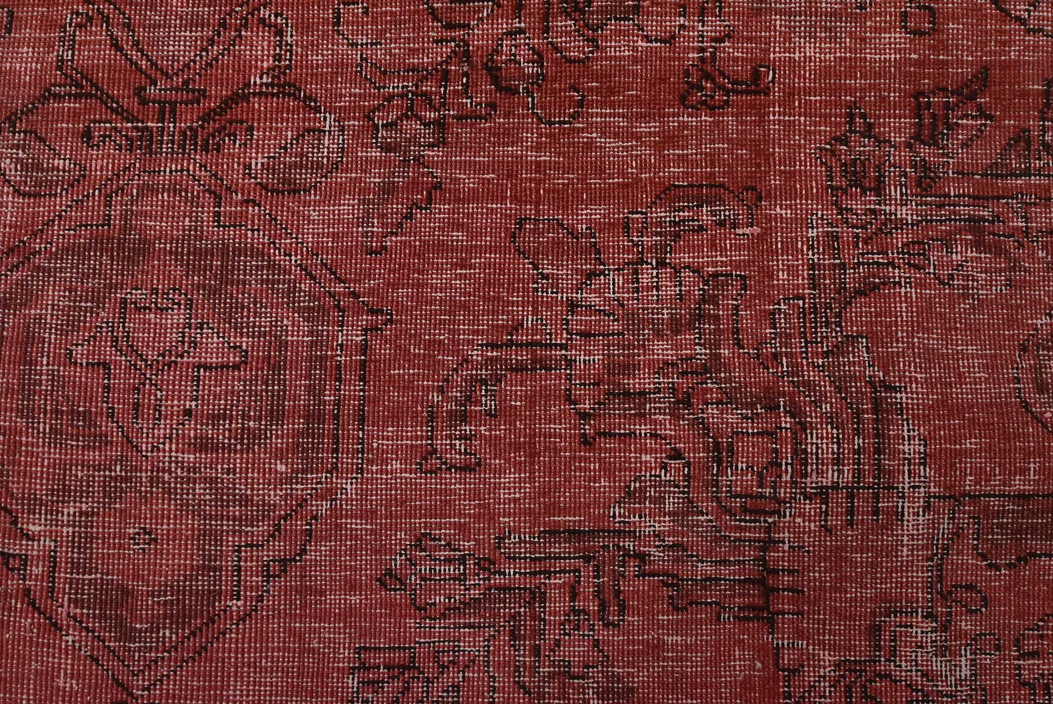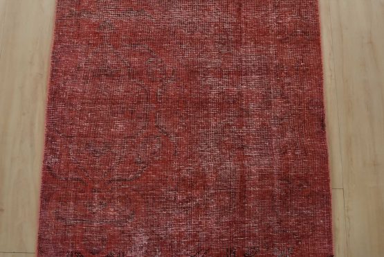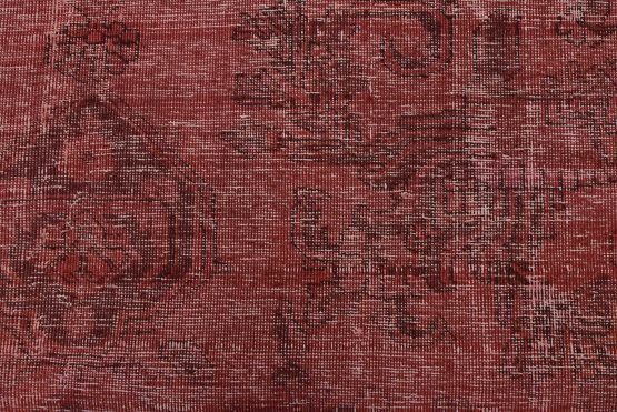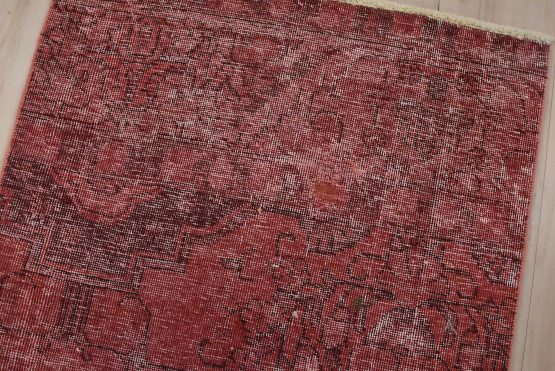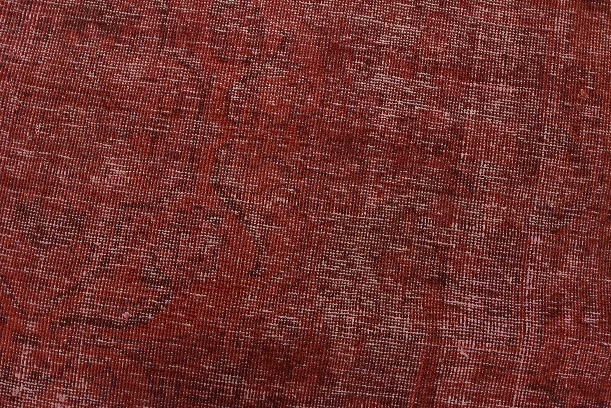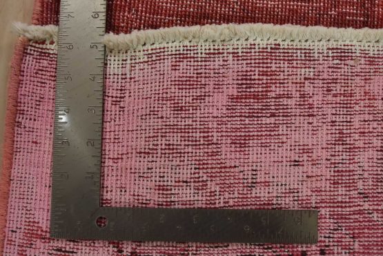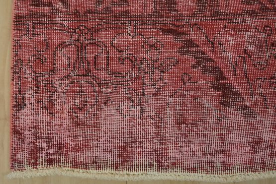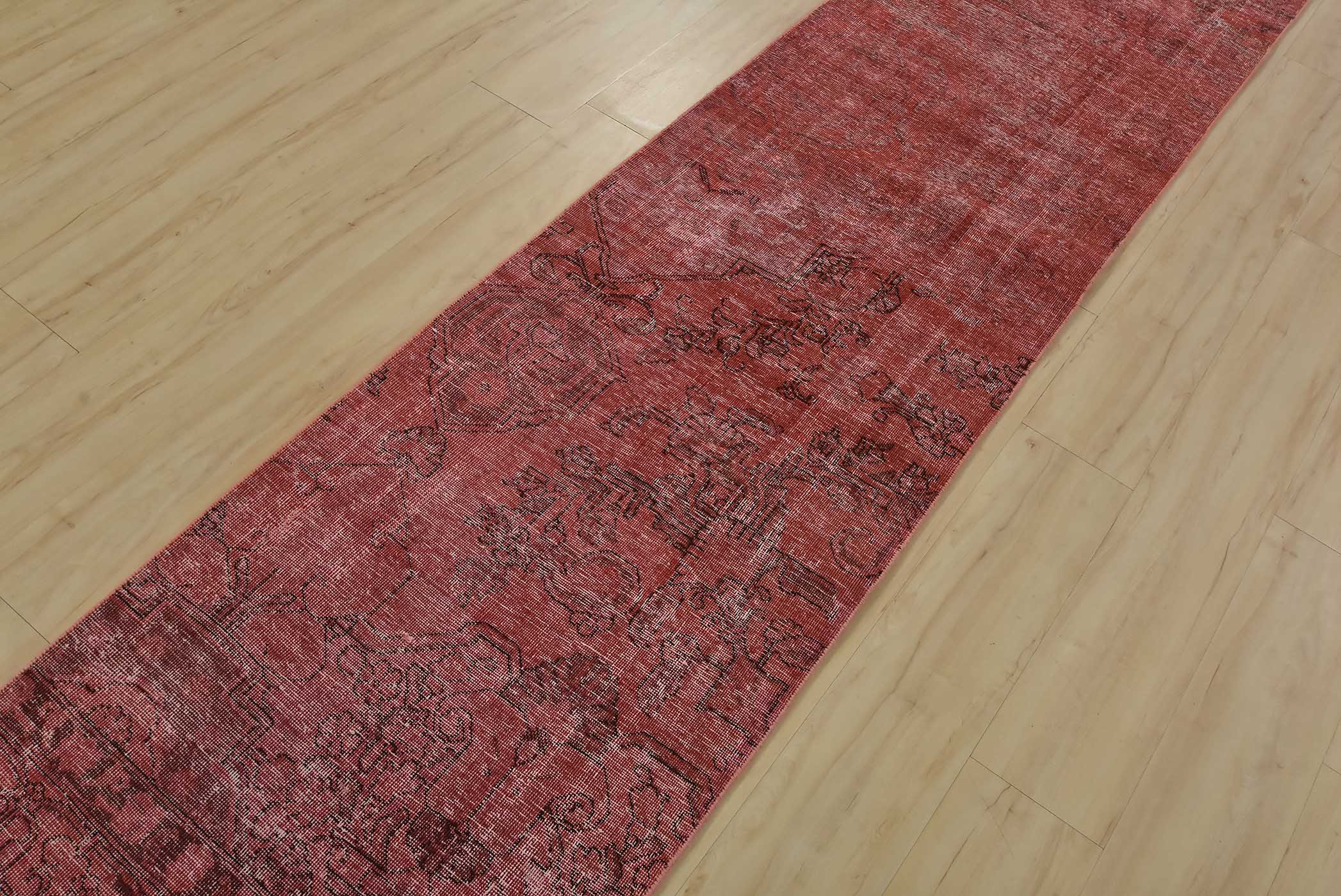 An authentic vintage traditional overdyed Tabriz runner hand-knotted with fine wool and natural dyes. This oriental rug features a botanical design set against a pink background. It has a low wool pile, is worn and distressed, and has minor imperfections (see photos). However, it is in very good condition.