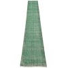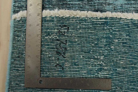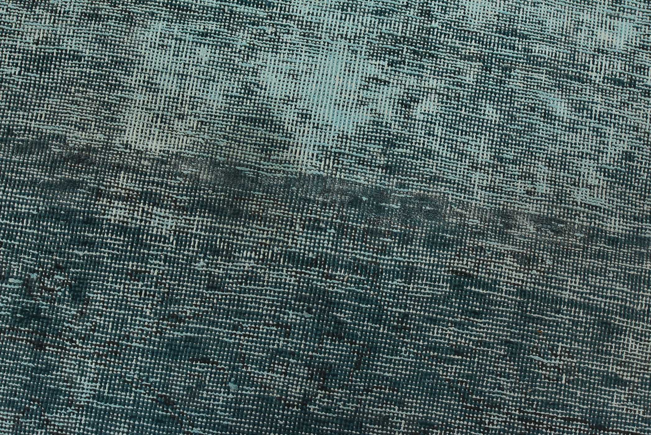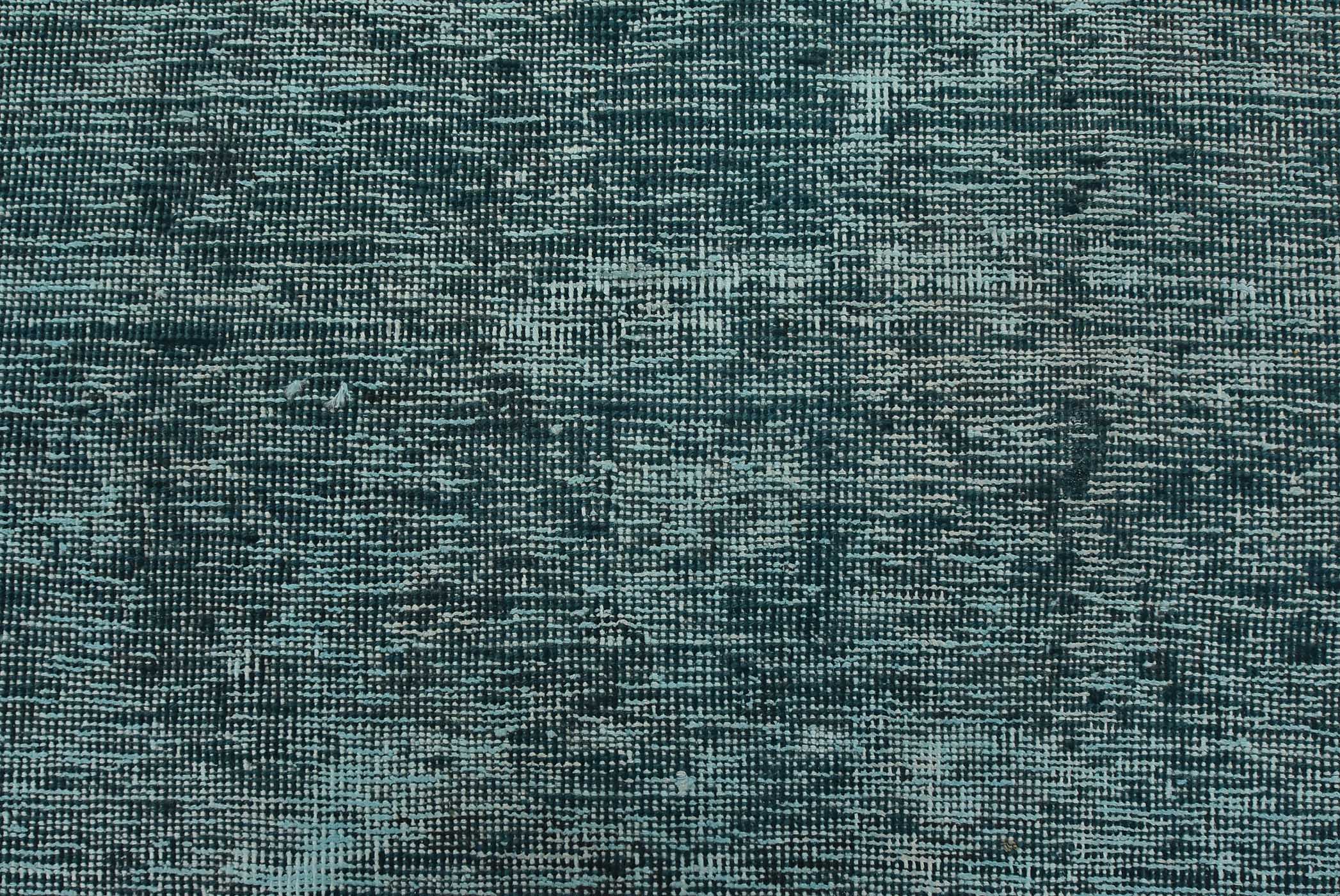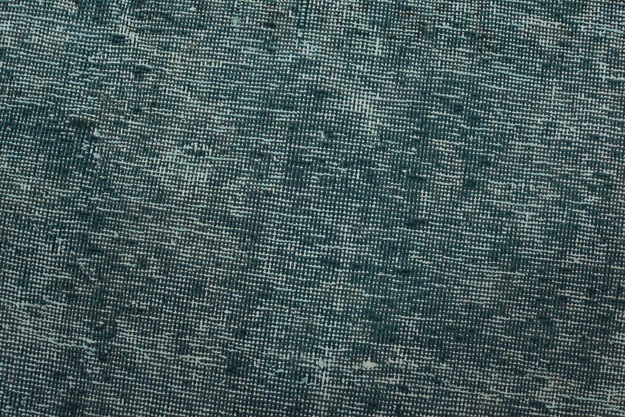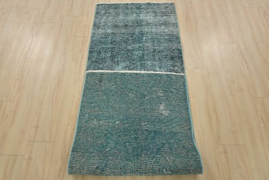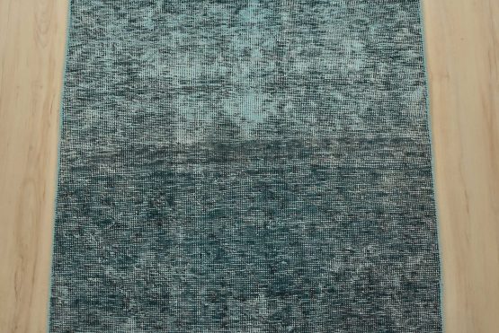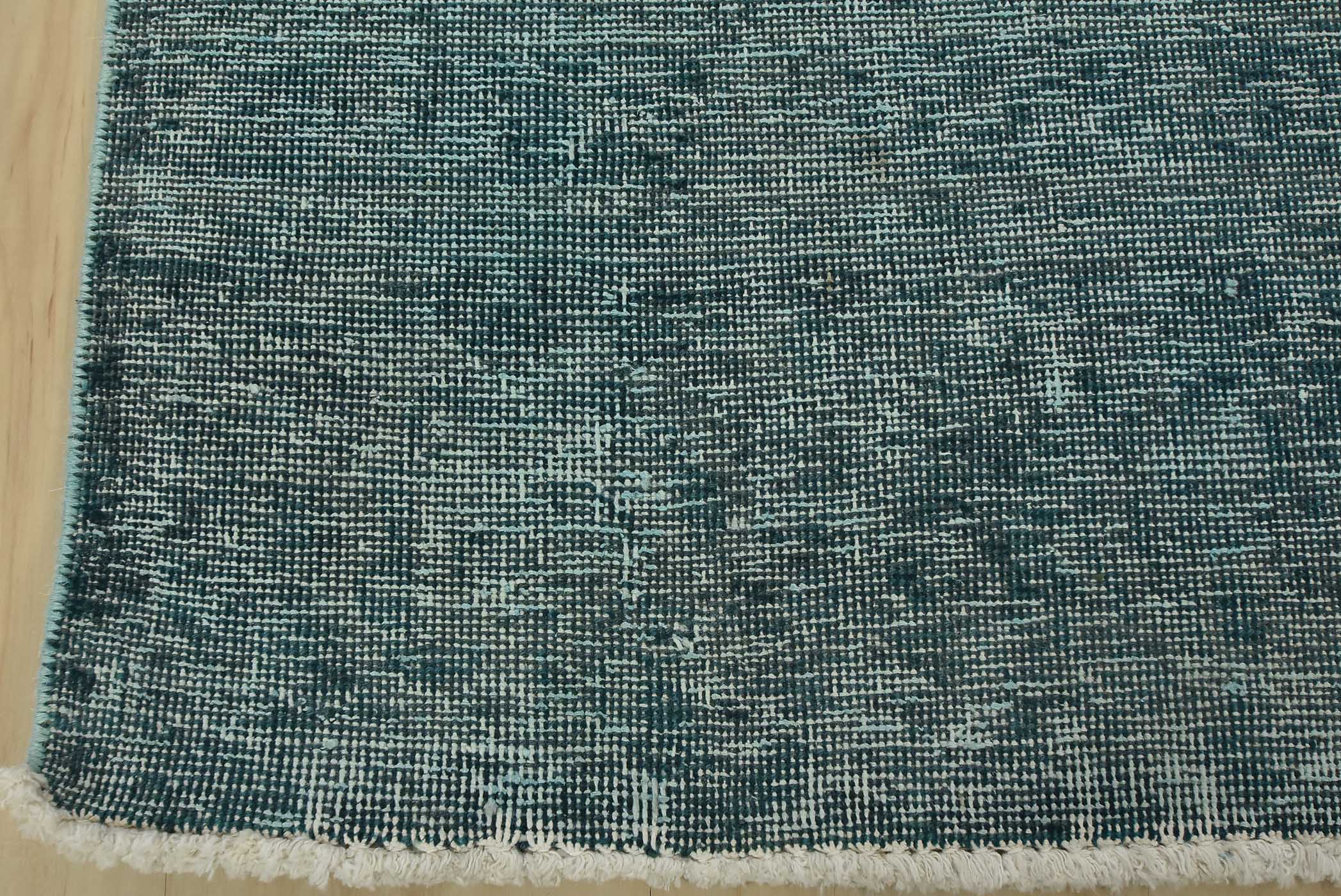 An authentic vintage traditional overdyed Tabriz runner hand-knotted with fine wool and natural dyes. This oriental rug features a blue background. It has a low wool pile, is worn and distressed, and has minor imperfections (see photos). However, it is in very good condition.