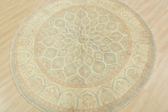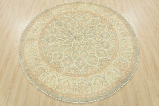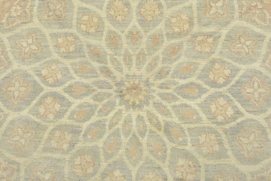 A traditional Tabriz Ziegler rug hand-knotted with an all-wool pile on a cotton foundation. This oriental rug features a muted Gonbad design set against a light blue background. A Gonbad design usually refers to the beautiful designs on the ceiling of a Mosque. It is new and in excellent condition.