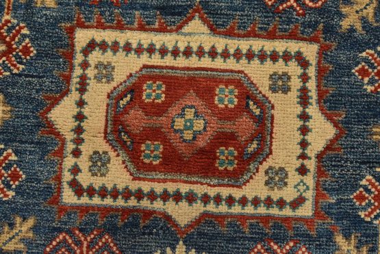Original antique Kazak rugs from the Caucasus region inspire the creation of new Kazak rugs. These rugs are woven with fine wool using traditional Kazak patterns and finished with a low-cut pile to give them an authentic vintage look.
